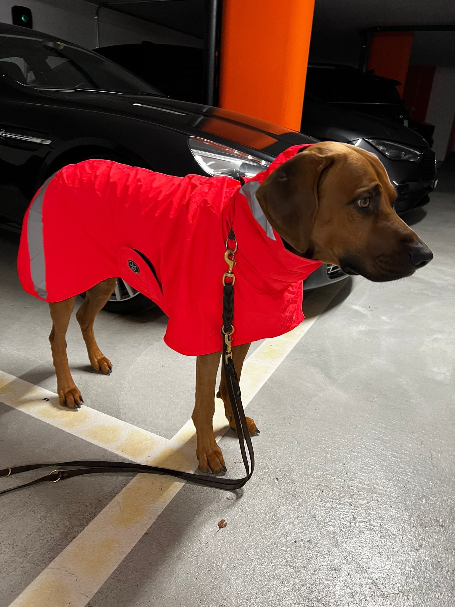 Auffällige reflektierende Elemente schützen den Hund in der Dämmerung.