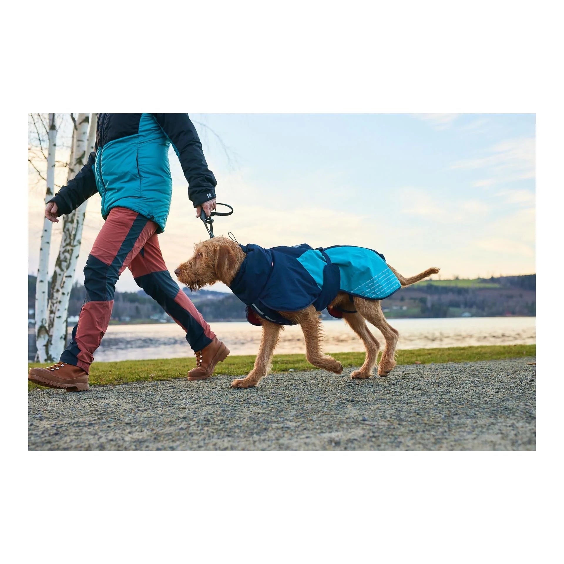 Die Glacier jacket 2.0 wurde mit neuen Einsätzen aktualisiert, um sich dem Körper Deines Hundes perfekt anzupassen. Der Kordelzug und der Brustgurt ermöglichen eine individuelle Anpassung. Beingurte helfen, die Hundejacke in der richtigen Position zu halten und verhindern, dass sie sich bei starkem Wind hebt. Spezielle Leinenöffnungen ermöglichen das Tragen eines Geschirrs und eines Halsbands unter der Jacke. Im Brustbereich der Jacke haben wir Entwässerungslöcher angebracht. Die Löcher verhindern, dass sich Wasser unter der Brust Deines Hundes sammelt, was dazu führen könnte, dass er friert und sich unwohl fühlt.