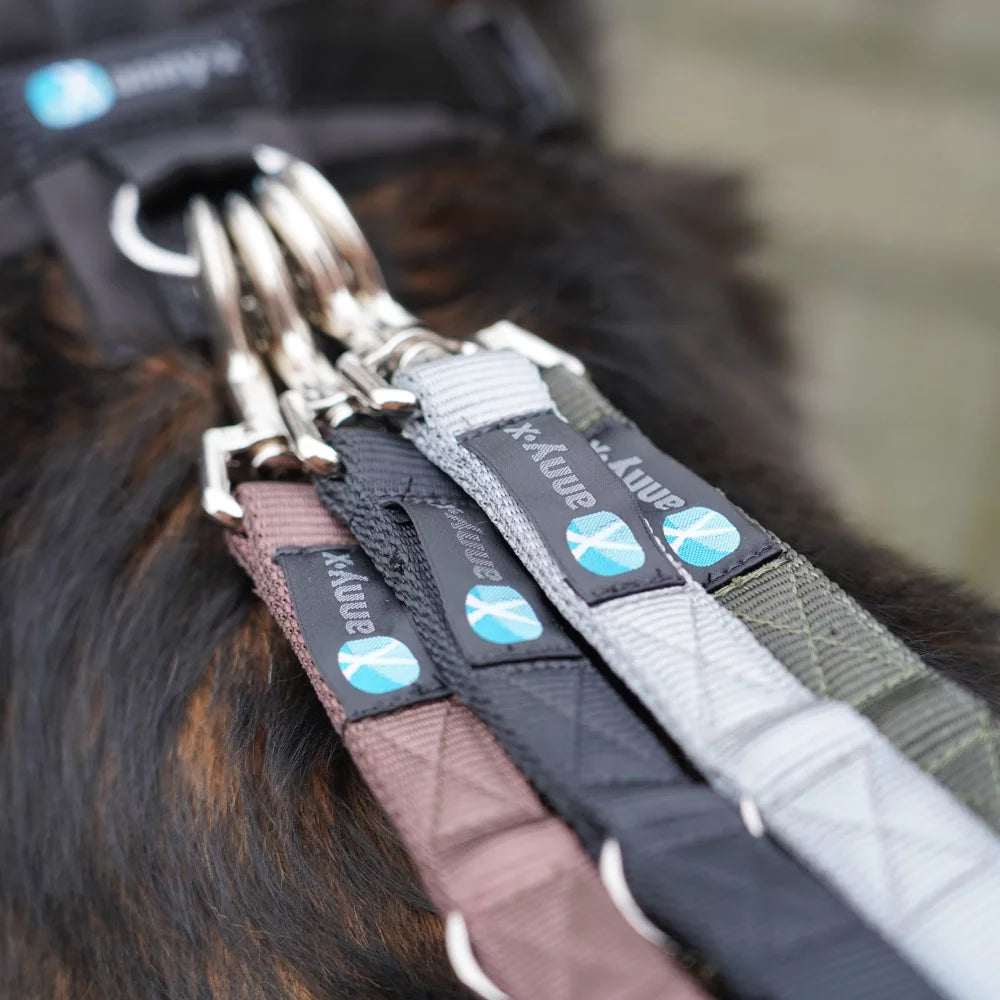 Die Leinen sind auf die Geschirrfarben abgestimmt.