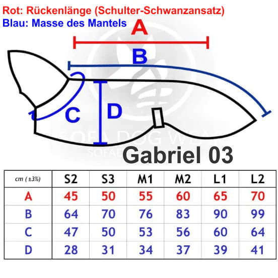 Sie haben mit dem Gabriel 03 ein modischer und praktischer Hundemantel aus leichtem Softshell, welcher bereits während der Übergangszeit eine tolle Lösung ist.