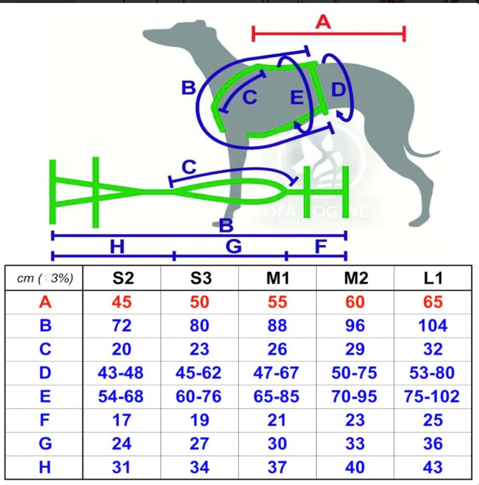 Sofadogwear has specially developed this harness with a split chest bar. It therefore offers dogs with deep chests (e.g. greyhounds) more support. The padding is made of soft, breathable 3D fabric (mesh material), it has a good grip on the dog and doesn't slip around, but it is still super soft and is also ideal for dogs with sensitive skin.