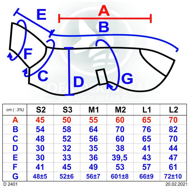 Original, practical cut with a long neck piece and opening for the leash. The buttocks and pelvis area is nicely covered and well protected.