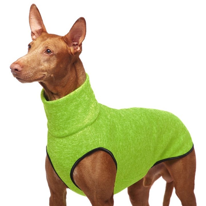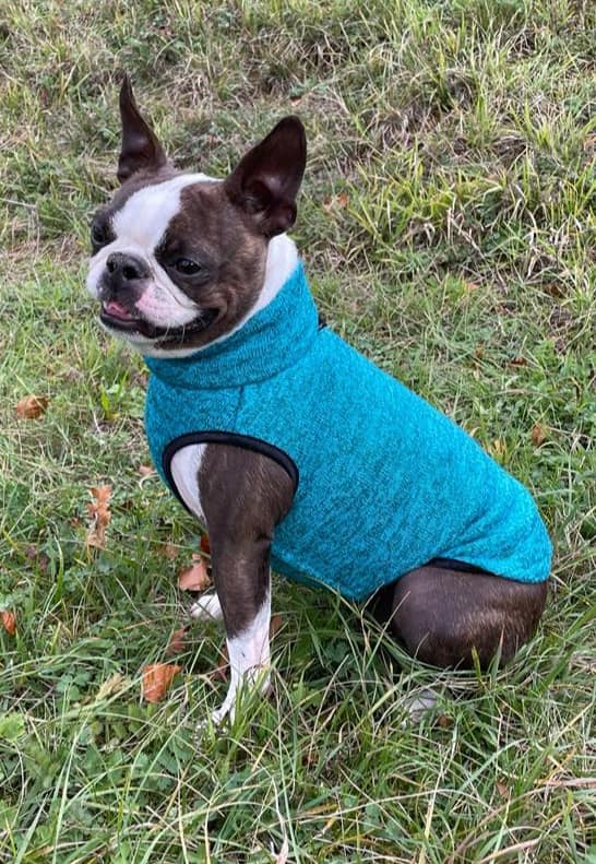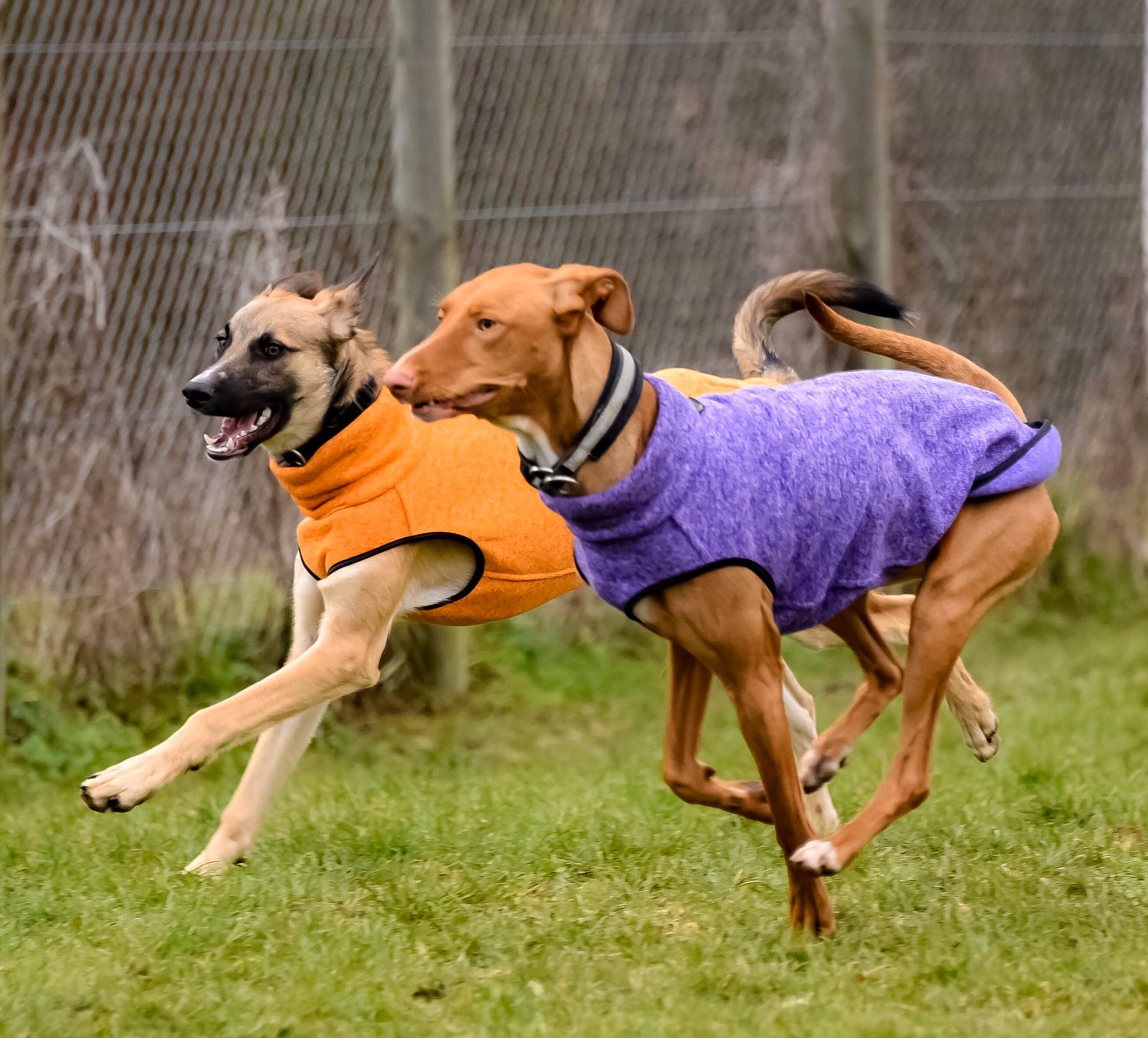 It is made from the popular jumper knitwear. This is a close-fitting, very comfortable material that has proven itself over the years and is an absolute hit. The dogs love it!
