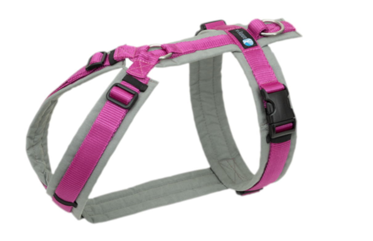 Le harnais rembourré (entièrement rembourré) Fun est réglable individuellement au niveau du cou et de la poitrine et deux boucles (à partir de la taille M) qui peuvent résister à des charges de traction allant jusqu'à 70 kg garantissent un enfilage facile. Le harnais est construit de manière à s'adapter ergonomiquement à la structure du corps du chien, ce qui entraîne une répartition optimale de la tension qui protège le dos de votre chien. Grâce à la longue barre sous la poitrine, les sangles tout autour au niveau de la poitrine créent un espacement propice aux mouvements par rapport aux jambes avant, de sorte que les aisselles sont protégées. Dans la plus petite configuration, la sangle est entièrement rembourrée de mousse perméable à l'air et celle-ci est à son tour bordée de Cordura (matériau hautement résistant à l'abrasion).