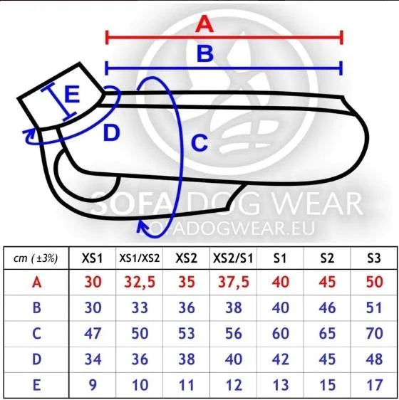 Veuillez noter que A (rouge)=longueur du dos du chien. La masse bleue restante est la masse de la chemise, pas du chien !!!