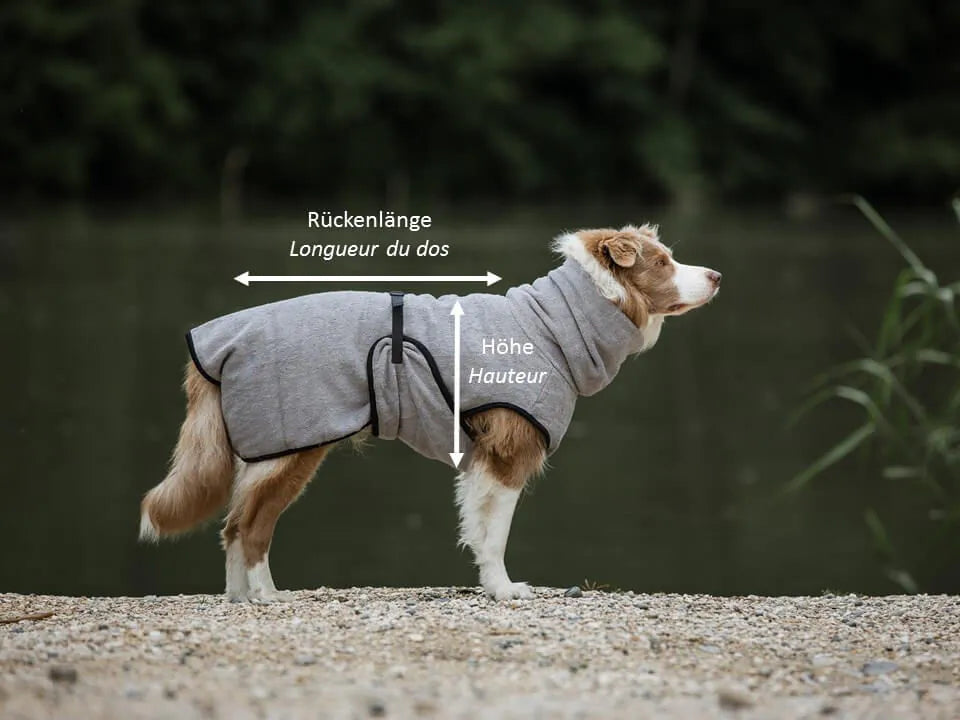 Grâce au tissu éponge 100% coton, ce peignoir est nettement plus absorbant que les modèles contenant du polyester, est très confortable à porter et peut être enfilé et retiré rapidement. Tirez simplement le manteau sur la tête de votre chien, faites passer la boucle ventrale entre les pattes avant et fermez-la avec la fermeture à boucle pratique à l'arrière - c'est fait.