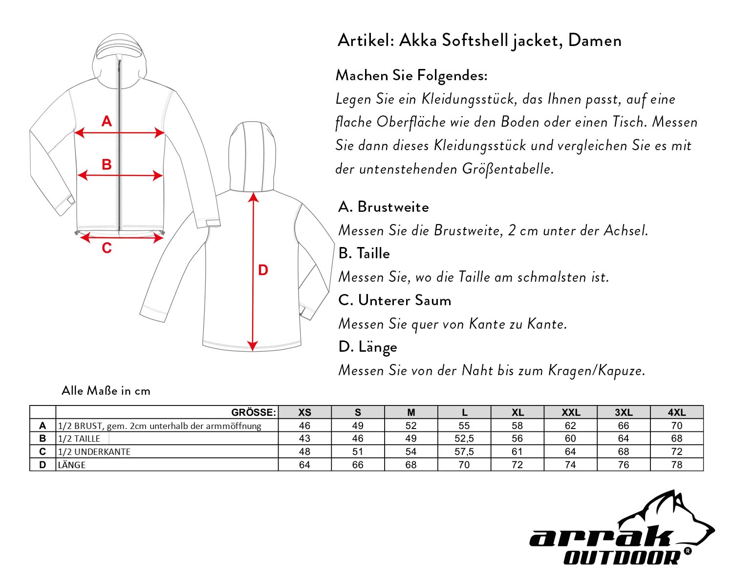 Akka Softshelljacke von Arrak Outdoor ist speziell für aktive Personen entwickelt, die ein Leben voller Outdoor-Aktivitäten führen, insbesondere Hundebesitzer. Die Jacke besteht aus 100% Polyester mit 4-Wege-Stretch, was überlegene Beweglichkeit und Komfort bei längeren Aufenthalten im Freien bietet.