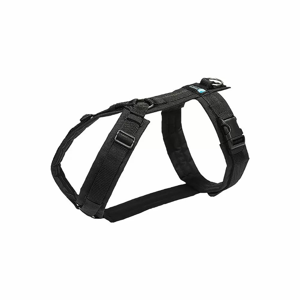 Le harnais rembourré (entièrement rembourré) Fun est réglable individuellement au niveau du cou et de la poitrine et deux boucles (à partir de la taille M) qui peuvent résister à des charges de traction allant jusqu'à 70 kg garantissent un enfilage facile. Le harnais est construit de manière à s'adapter ergonomiquement à la structure du corps du chien, ce qui entraîne une répartition optimale de la tension qui protège le dos de votre chien. Grâce à la longue barre sous la poitrine, les sangles tout autour au niveau de la poitrine créent un espacement propice aux mouvements par rapport aux jambes avant, de sorte que les aisselles sont protégées. Dans la plus petite configuration, la sangle est entièrement rembourrée de mousse perméable à l'air et celle-ci est à son tour bordée de Cordura (matériau hautement résistant à l'abrasion).